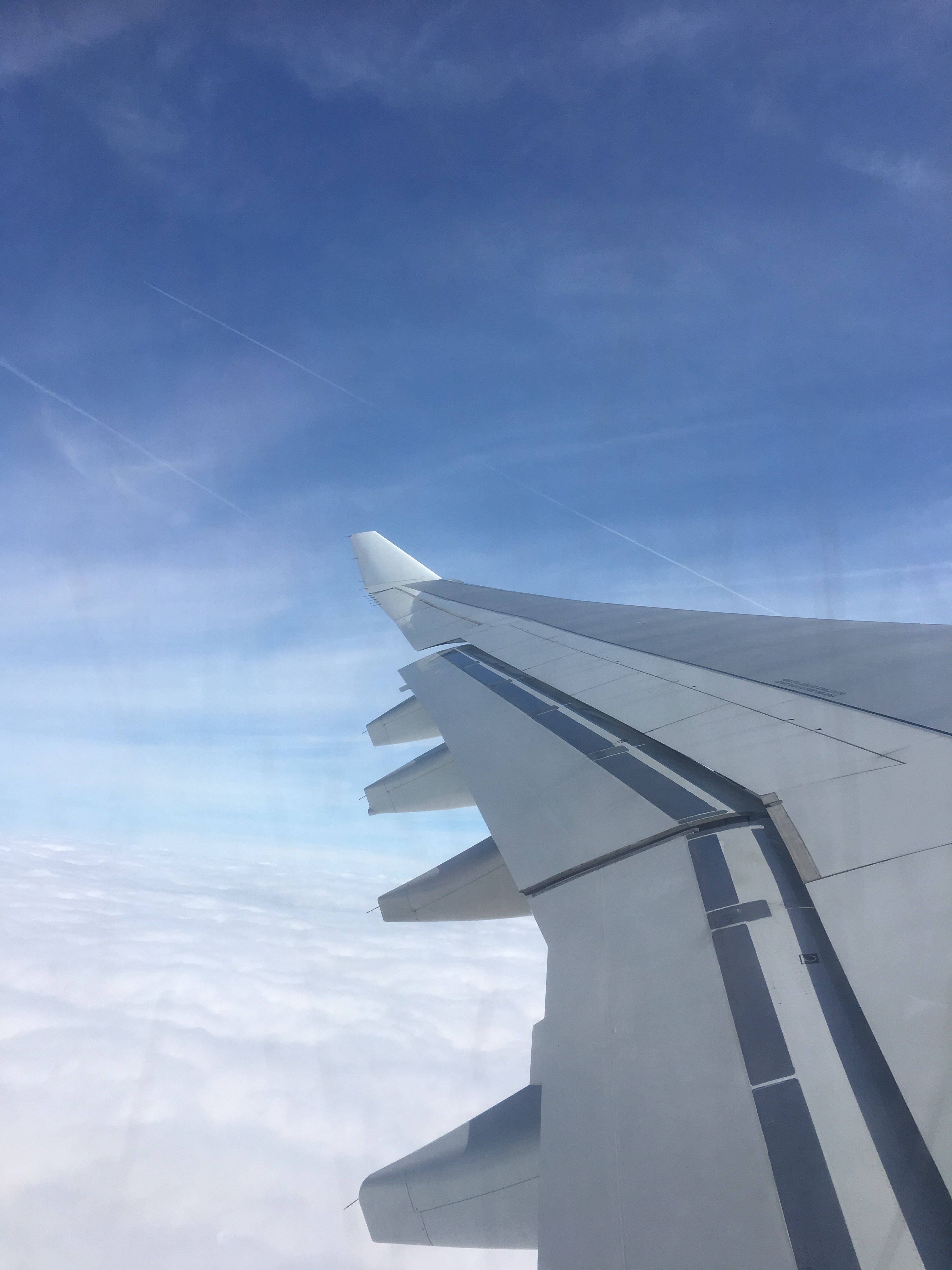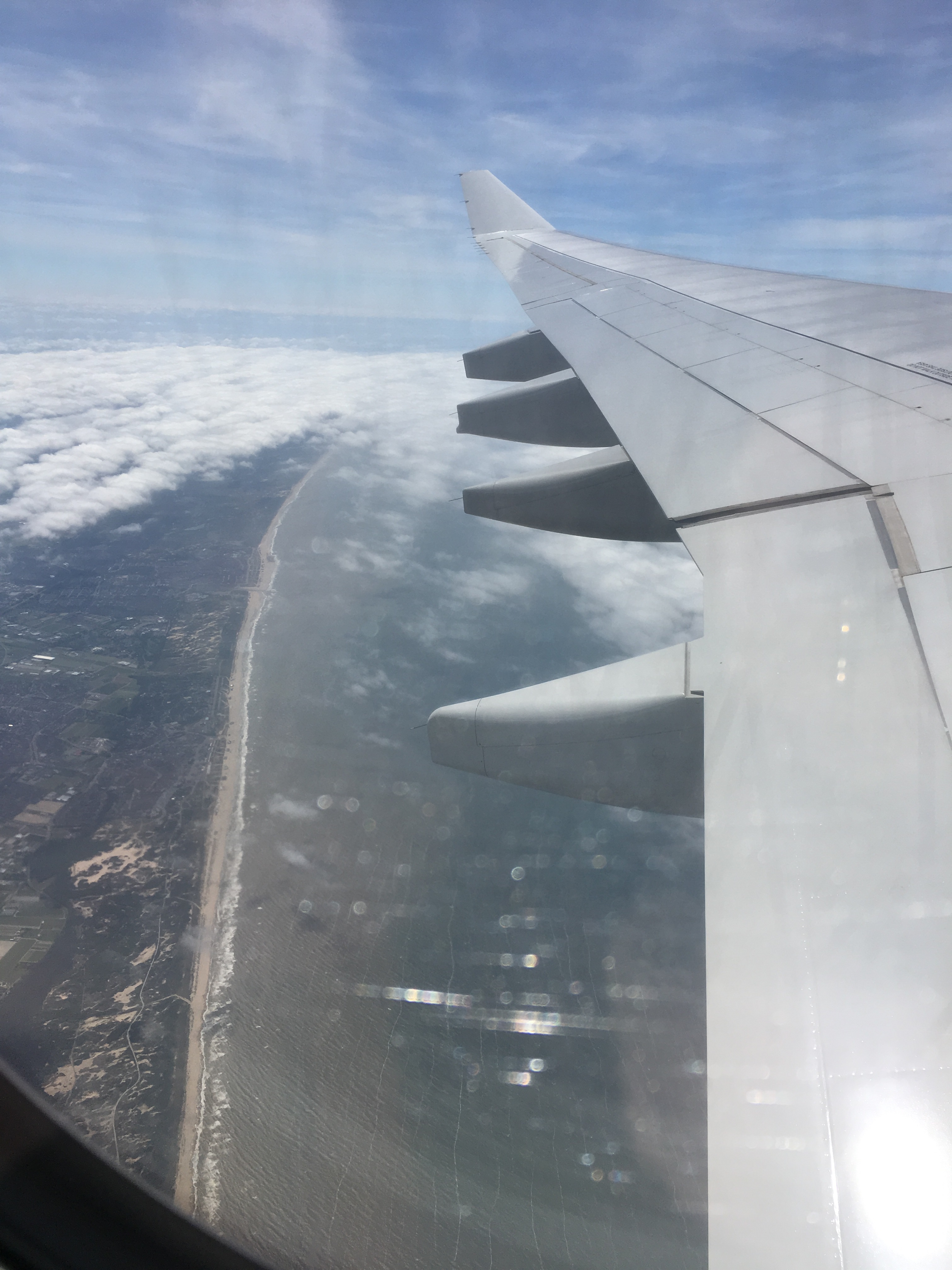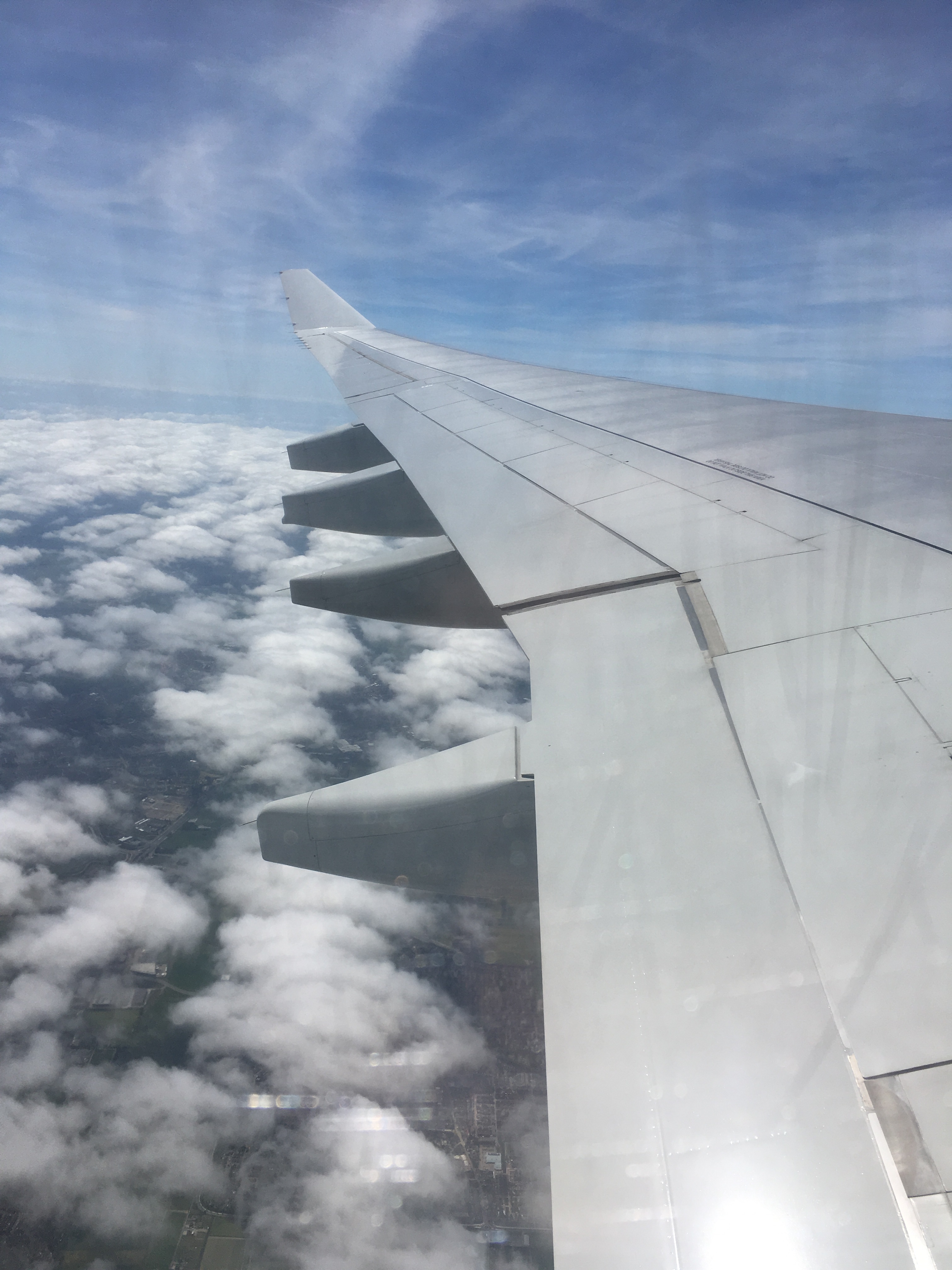 Officieel zou het vliegtuig om 13:00 vertrekken, maar dat duurde wat langer. Uiteindelijk steeg het vliegtuig rond half twee op.