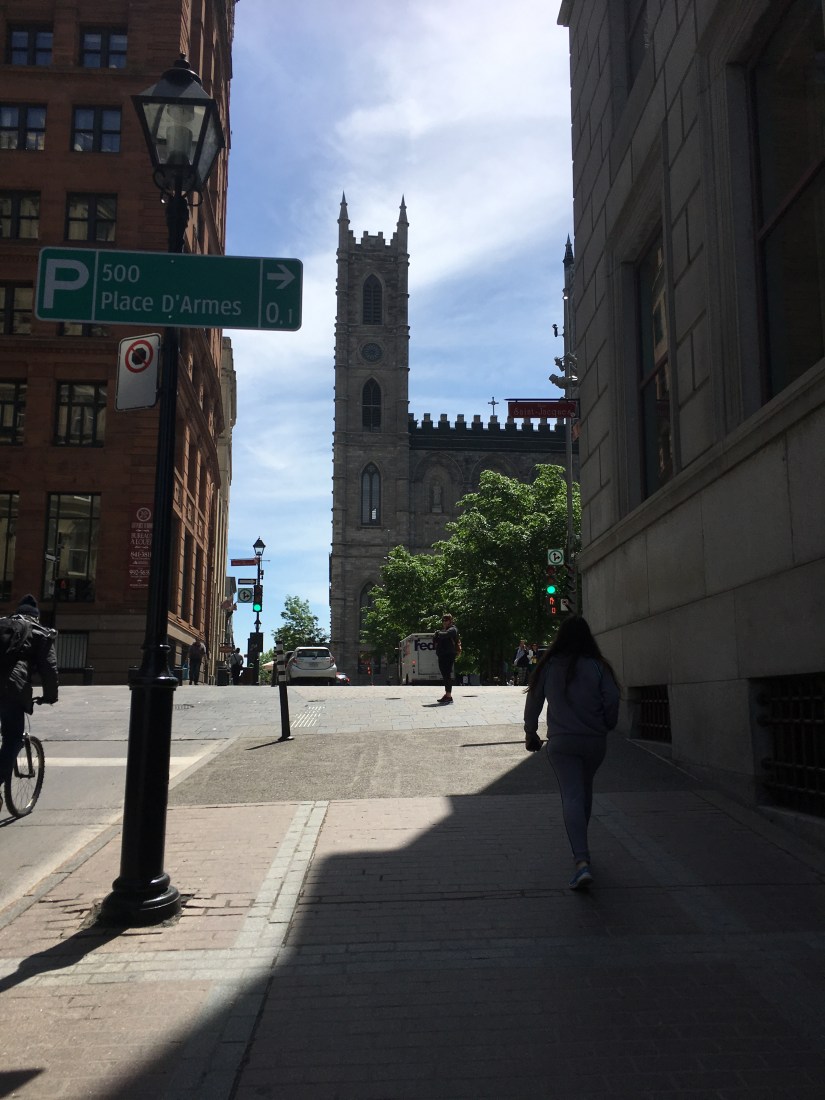 Vanochtend hebben we wat langer geslapen en daarna weer ontbeten op de hotelkamer. Rond een uur of elf zijn we naar het metrostation gelopen en hebben we een kaartje voor 24 uur gekocht waarmee we de hele stad door konden met de metro. Eerst zijn we naar het oude gedeelte van Montréal gedaan waar ook de Notre Dame staat, de niet afgebrande. 😉