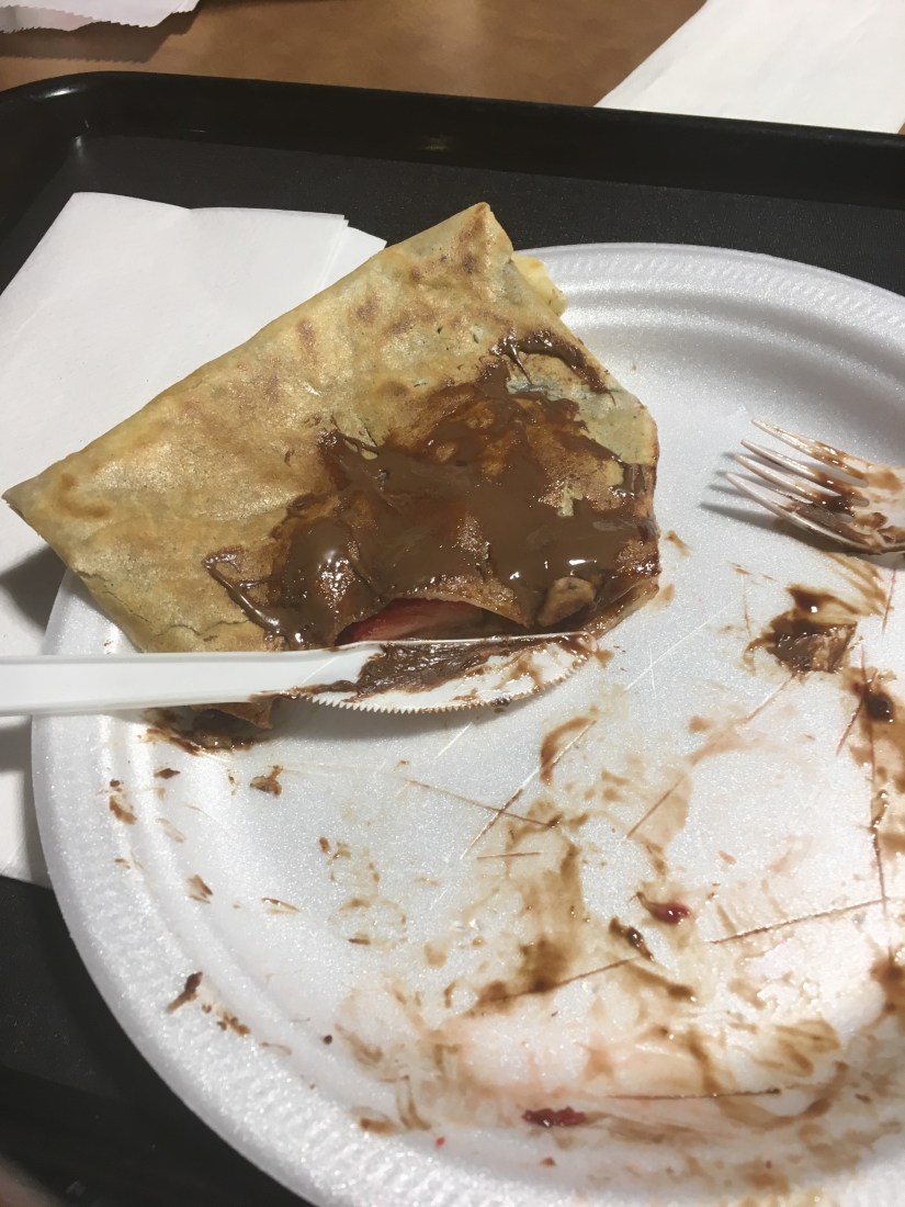 Toen weer verder gelopen en de metro naar een andere halte genomen. Hier zat een groot winkelcentrum bij, onder de grond. Hier was onze favoriete winkel, Bath and Body Works, weer en hebben we weer wat ingeslagen. Toen in de foodcourt wat gegeten. Ik heb hier een crèpe Nutella met aardbeien gegeten.