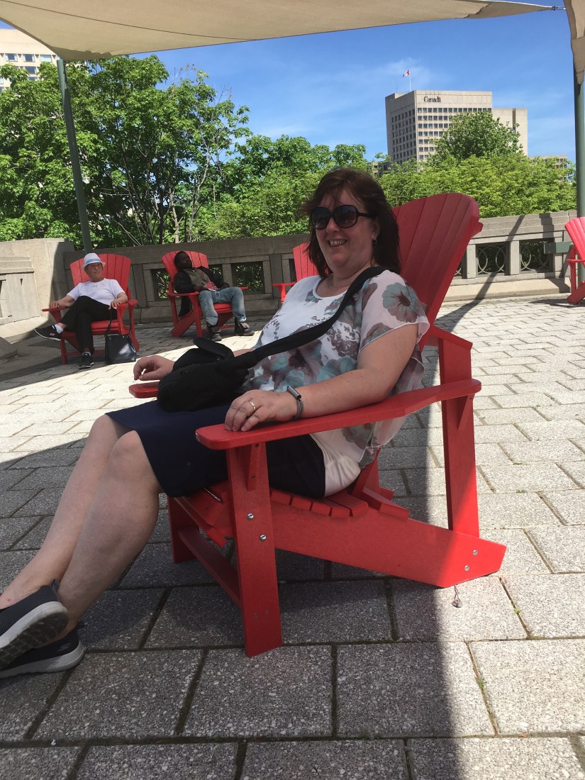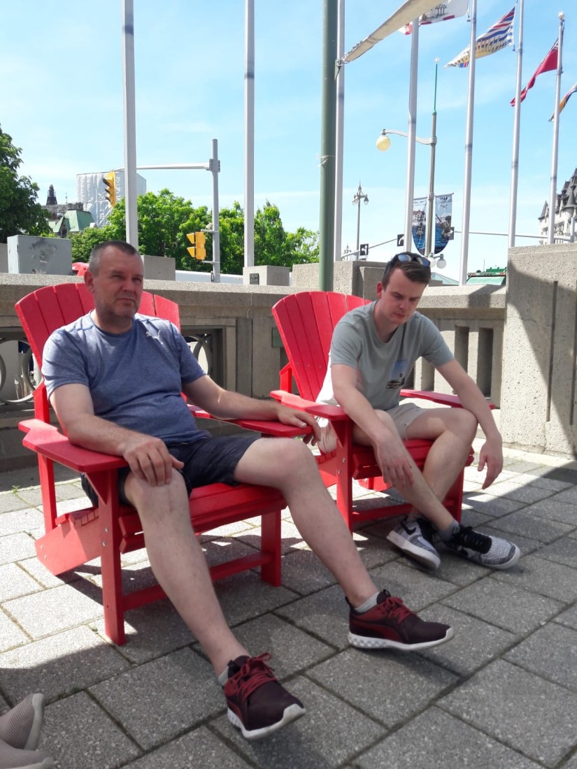 Eenmaal buiten zijn we een stukje door de stad gaan lopen en uiteindelijk even in de schaduw in loungestoelen gaan zitten die je overal in Canada ziet.