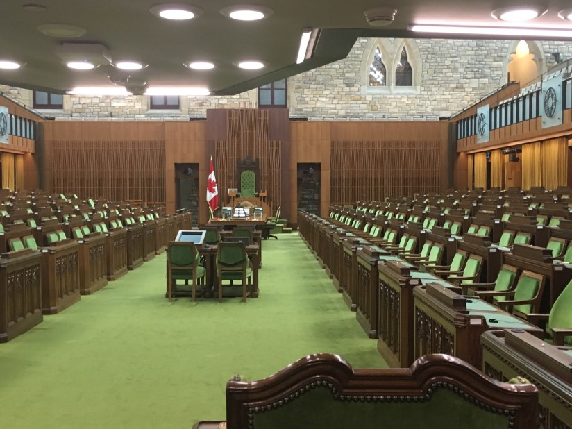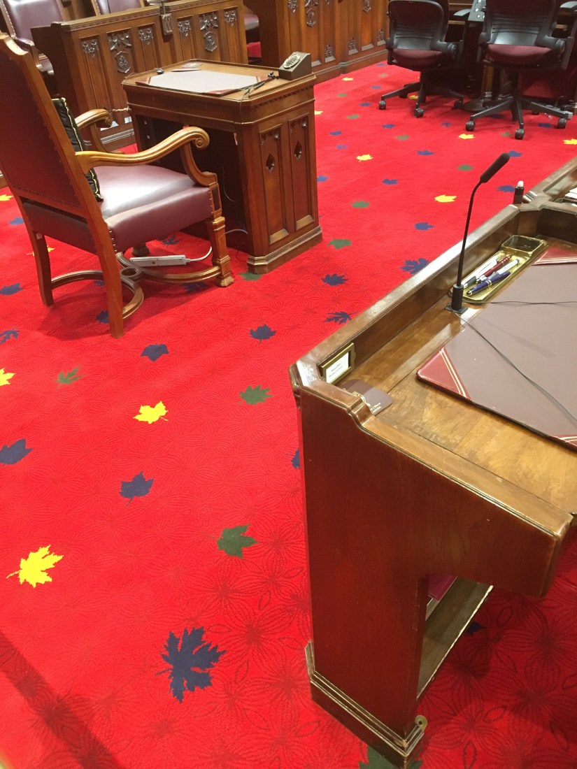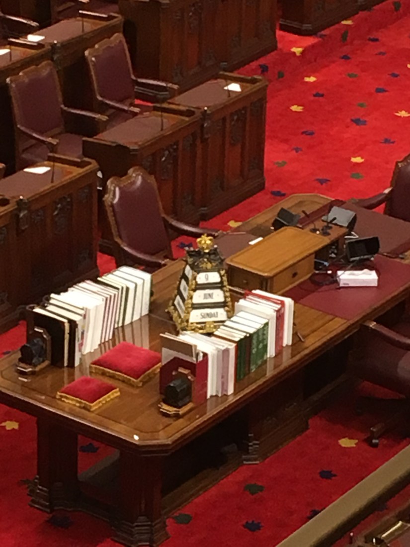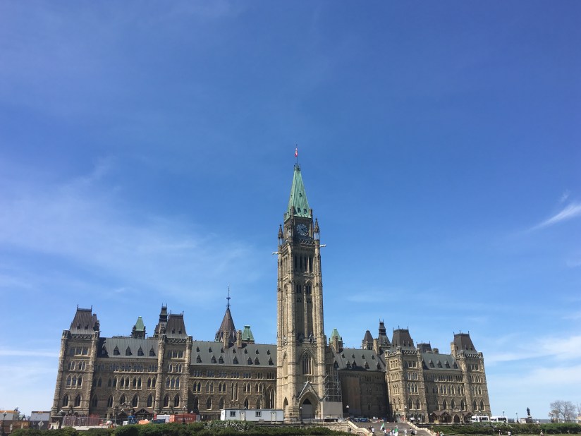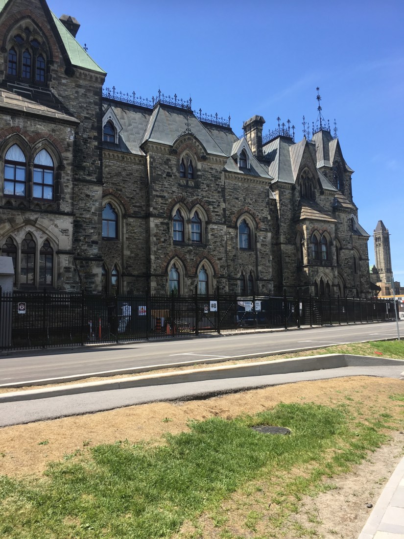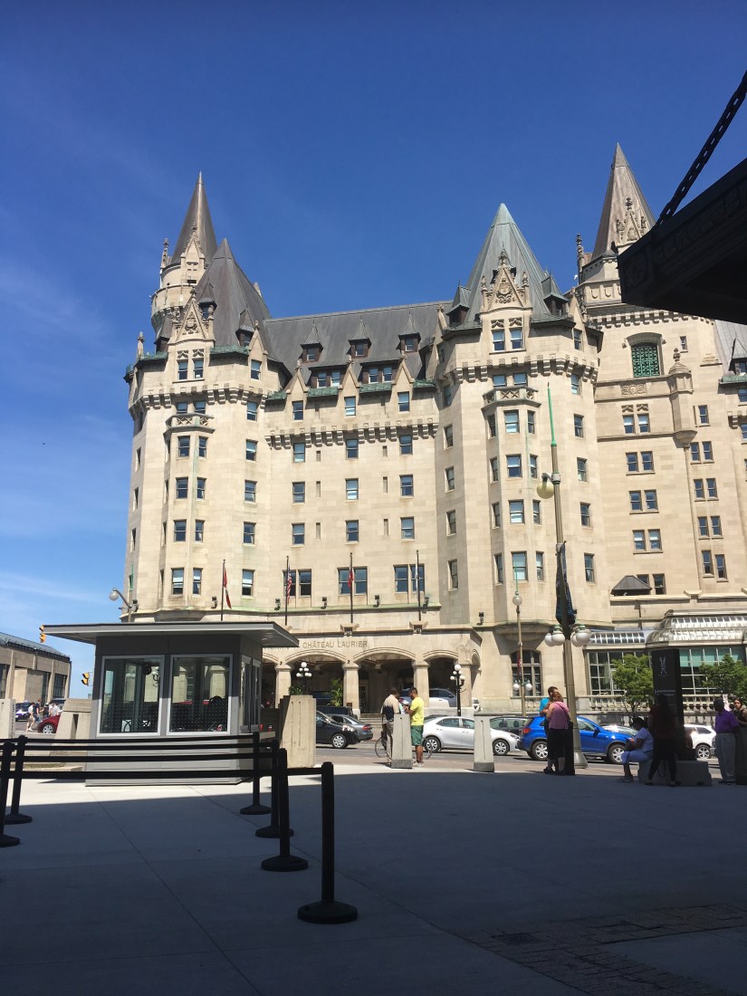 Rond half elf zijn we richting the House of Senate gelopen. Hier hadden we een tour gepland staan om 11:30 en moesten twintig minuten van te voren aanwezig zijn omdat je eerst nog langs security moest. Bij dit soort scans gaat het poortje altijd af op de knie van mijn vader, gelukkig zit er een mooi litteken dus hebben ze het gelijk door. Desalniettemin wordt hij dan toch nog een keer extra gescand. The House of Senate is sinds begin dit jaar verhuisd naar het pand waar het nu zit omdat de originele plek compleet gerenoveerd wordt, een tienjarenplan zoals het nu staat. The House of Senate zit nu in een oud treinstation, ook een mooi gebouw met mooie oude details. Van de tourguide kregen we veel informatie over hoe het systeem in Canada werkt. Het systeem is vergelijkbaar met het systeem in Nederland.