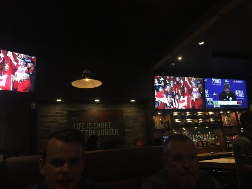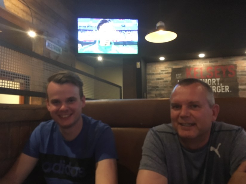 Voor het avondeten zijn we naar de overkant van de straat gegaan, naar Kelseys Roadhouse. Hier hadden we al meerdere keren reclame van op tv gezien dus we waren wel benieuwd. Het eten was weer erg lekker, helaas vergeten foto’s te maken.. Aan het einde nog een toetje, Marcel en ik hebben een witte chocolade cheesecake met karamelsaus gehad. (Weetje over de laatste twee foto’s, er zat ongeveer 3 minuten tussen..)