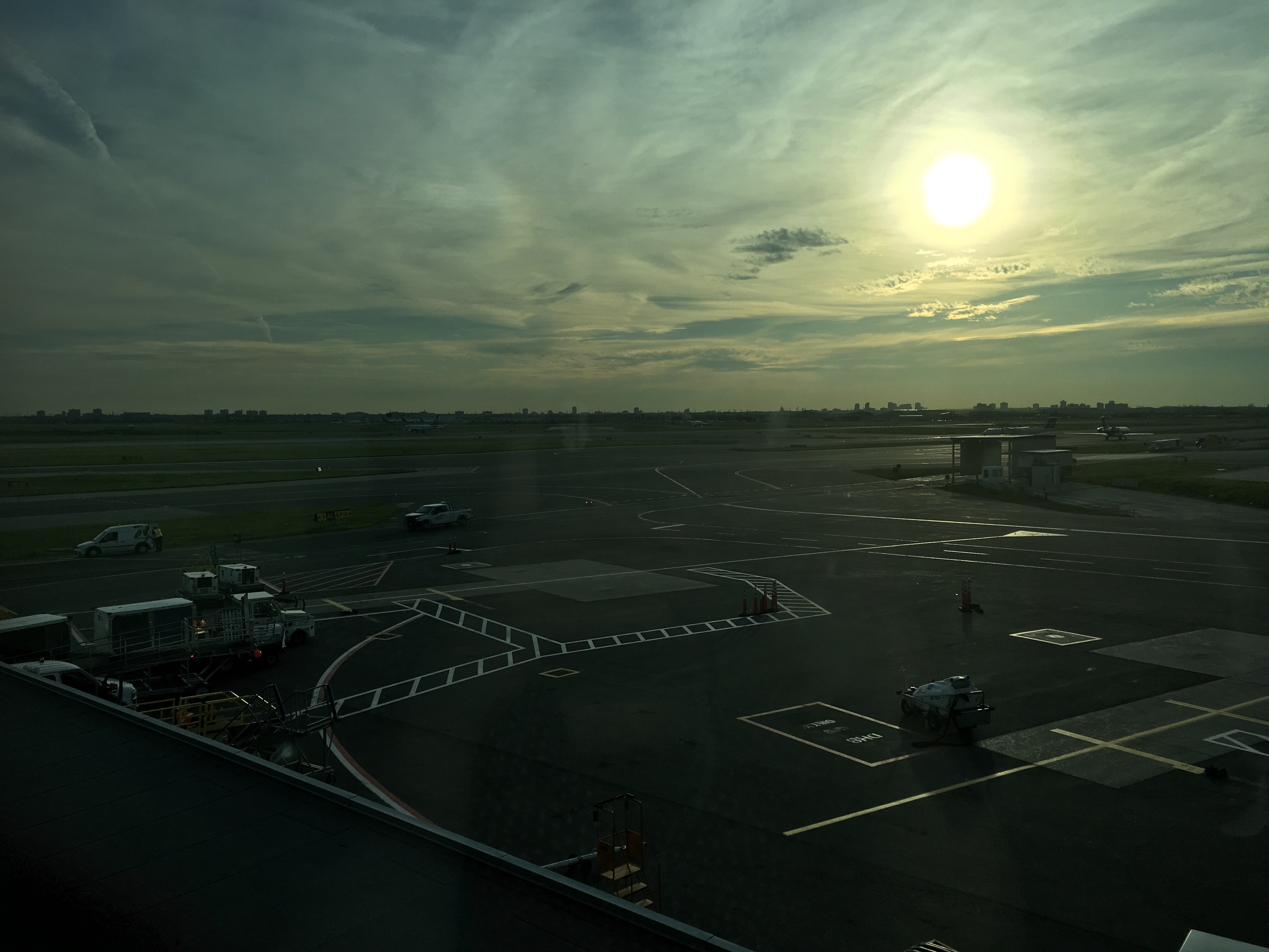 Op het vliegveld bij een zelf check in ingecheckt voor het vliegtuig en daarna de koffers ingeleverd. Toen door security en ook dit ging weer vlot. Ook hier werd de nieuwe knie van mijn vader weer opgemerkt door het poortje, hij werd nog even grondig gecheckt. Mijn tasje met vloeistoffen was ook erg interessant. Degene die er naar keek heeft wel een aantal keer het tasje omdraaiend goed bekeken maar uiteindelijk was het toch goedgekeurd. Zat ook niks bijzonders in, maar daar leken zij anders over te denken haha. Na security zijn we richting de gate gelopen. Toen we uiteindelijk bij de gate waren, waren we al bijna weer in Nederland zo ver was het lopen. 😉 We waren mooi op tijd bij de gate en hadden nog een mooie zitplek. Konden de zonsondergang nog mooi bekijken.