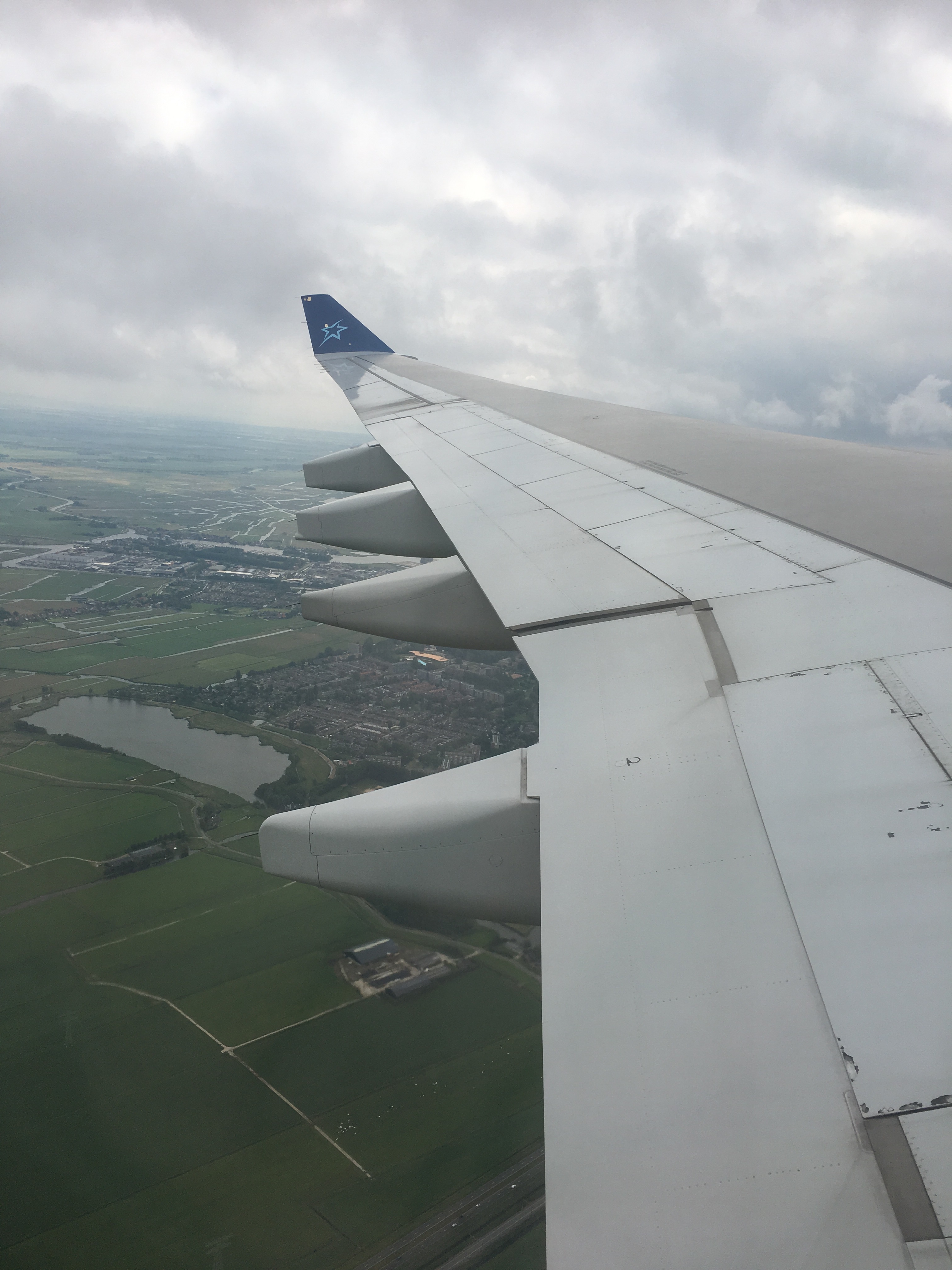 We vertrokken uiteindelijk iets later dan gepland en eenmaal in de lucht werd omgeroepen dat er een warme maaltijd en een snack geserveerd werden tijdens de vlucht. Waren wij even blij dat wij al lekker gegeten hadden en geen honger, dit vliegtuigeten rook namelijk niet zo smakelijk, en hebben dan ook vriendelijk bedankt. Van slapen in het vliegtuig kwam niks, dat lukt gewoon niet in zo’n kleine vliegtuigstoel. Dus maar films gekeken en muziek geluisterd. Uiteindelijk werd er als snack/ontbijt een plak cake met sap geserveerd. Uiteindelijk landden we rond half twaalf ’s ochtends weer op Schiphol.